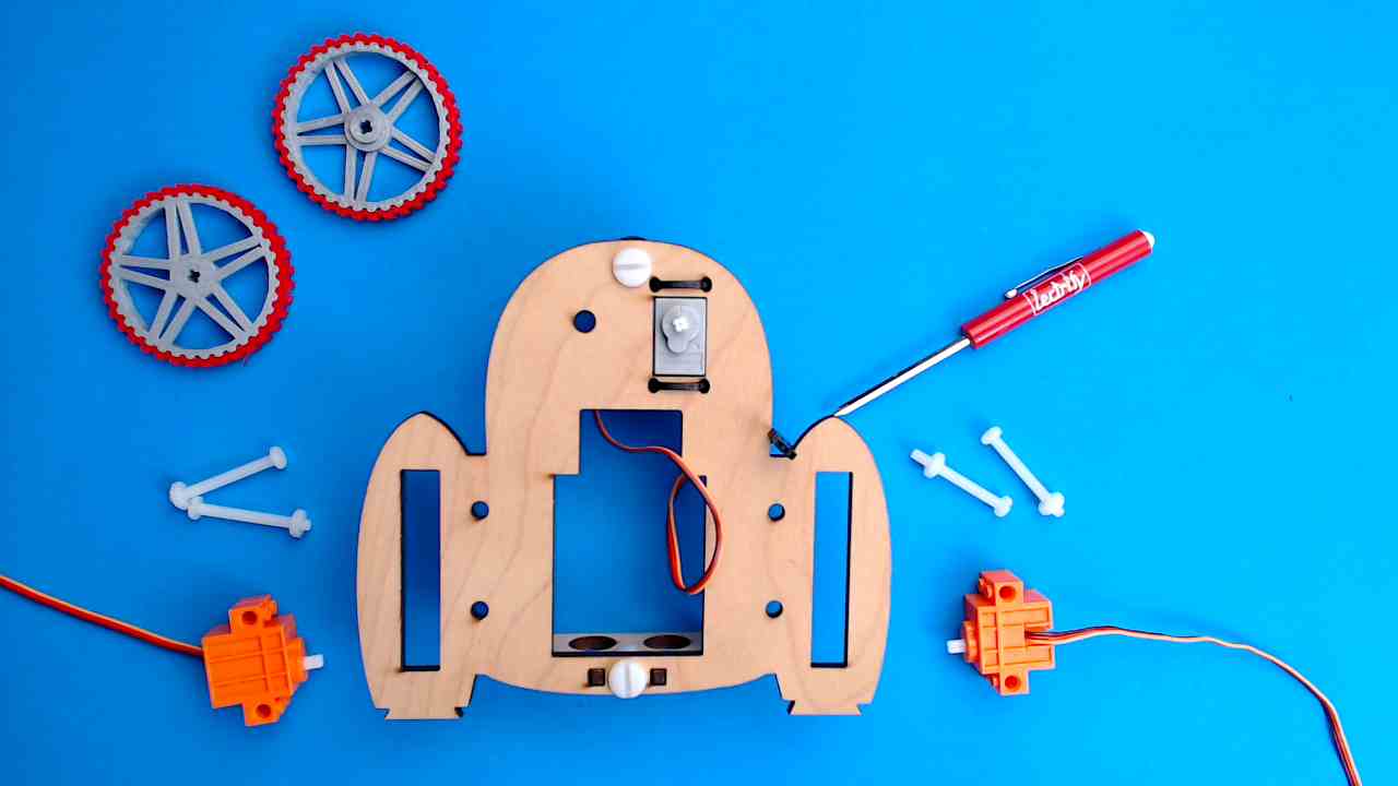 First, grab all the parts you need. Check out the first photo to make sure you’ve got everything ready to go! Then line up your servo motors on each side as pictured here.